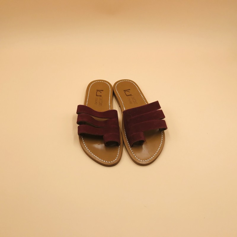 Les sandales K.Jacques sont fabriquées à la main par nos artisans à Saint-Tropez en France. Nos tropéziennes sont composées d'une semelle en cuir et d'un talon en caoutchouc hévéa naturel.