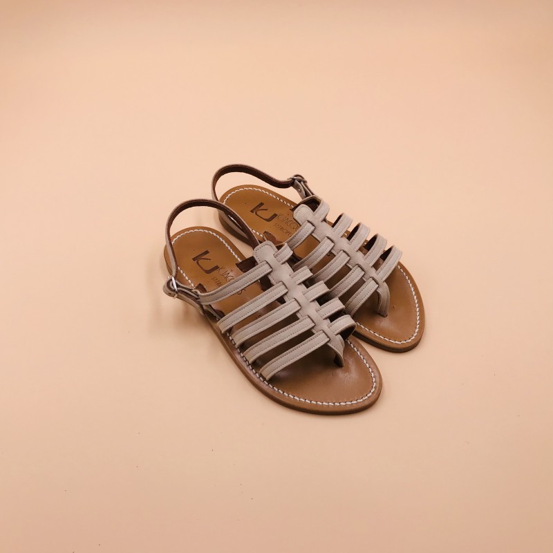Les sandales K.Jacques sont fabriquées à la main par nos artisans à Saint-Tropez en France. Nos tropéziennes sont composées d'une semelle en cuir et d'un talon en caoutchouc hévéa naturel.