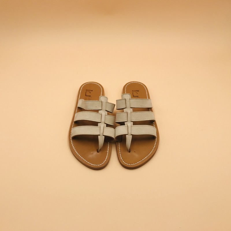 Les sandales K.Jacques sont fabriquées à la main par nos artisans à Saint-Tropez en France. Nos tropéziennes sont composées d'une semelle en cuir et d'un talon en caoutchouc hévéa naturel.