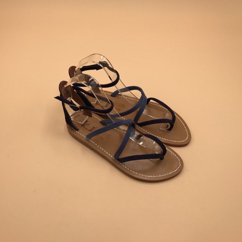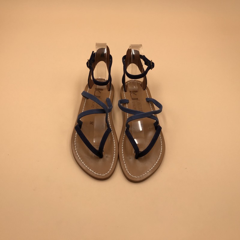 Sandales plates K.JACQUES, modèle EPICURE en cuir Velours Marine Velours Jeans , pointure 36.