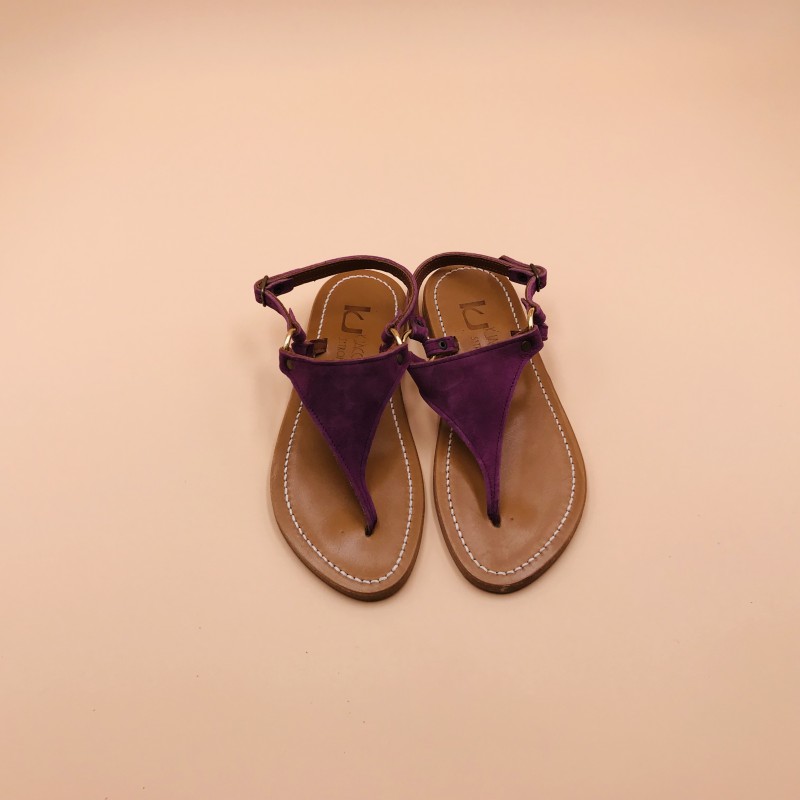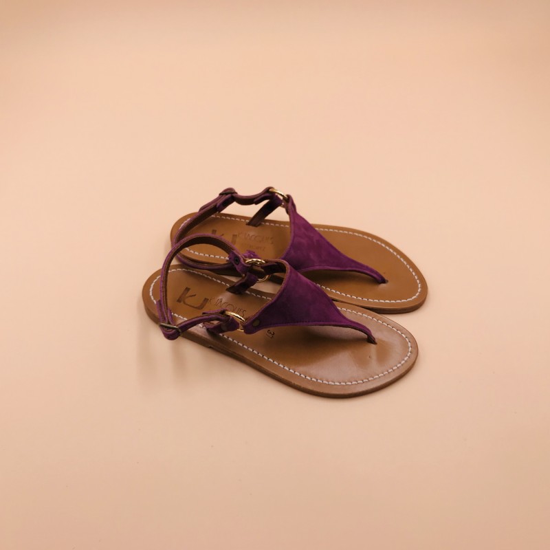 Sandales plates K.JACQUES, modèle TRITON en cuir Velours Mauve pointure 37.