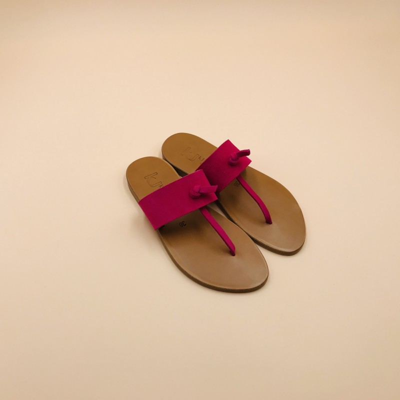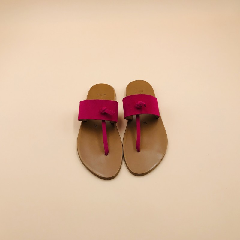 Sandales plates K.JACQUES, modèle SHAMBALA en cuir Velours Framboise sur semelle Epure Naturelle, pointure 36.