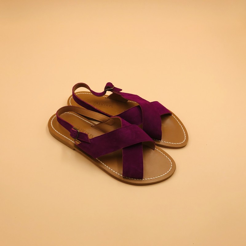 Sandales plates K.JACQUES, modèle OSORNO en cuir Velours Bizantium pointure 41.