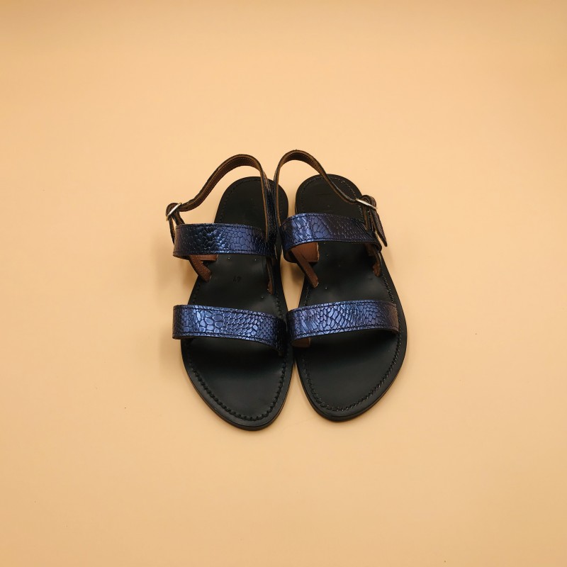 Sandales plates K.JACQUES, modèle BARIGOULE semelle EBENE en cuir Seoul Marine, pointure 41