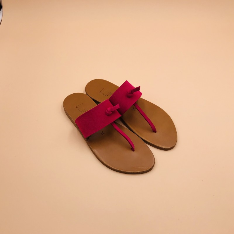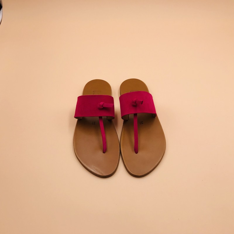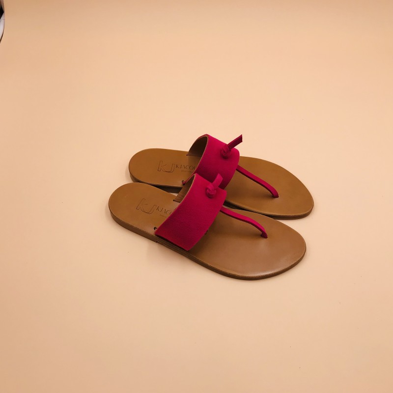 Sandales plates K.JACQUES, modèle SHAMBALA en cuir Velours Framboise sur semelle Epure Naturelle, pointure 37.