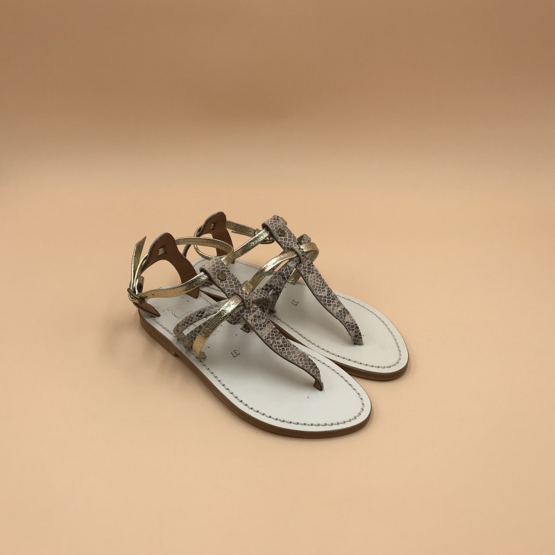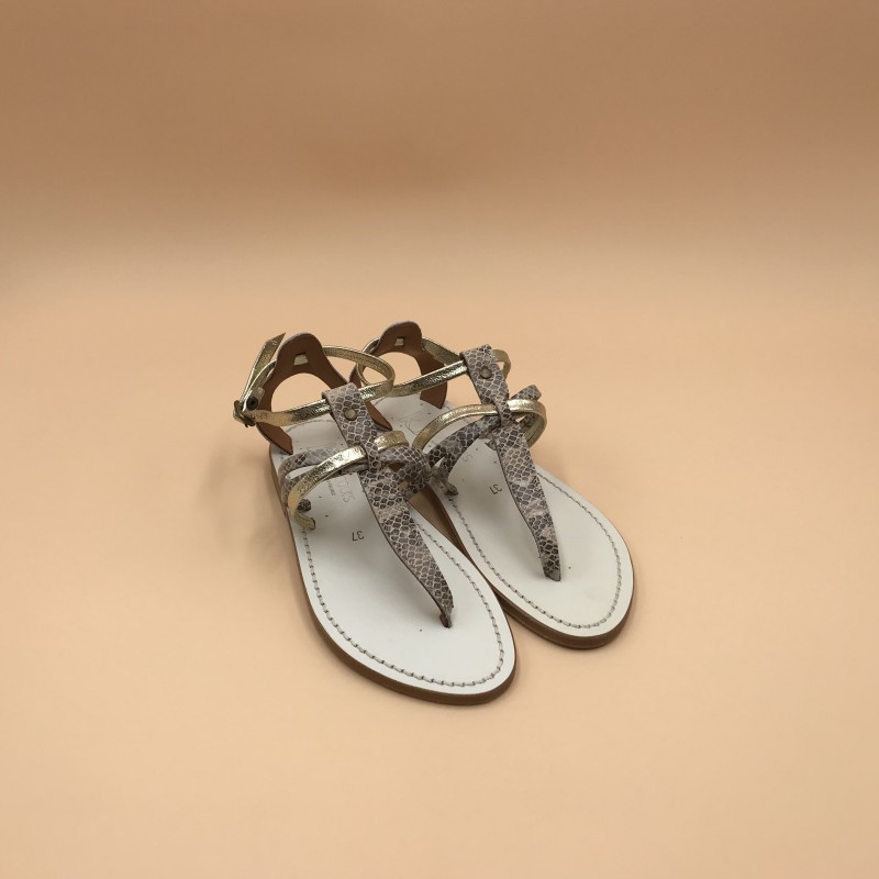 Sandales plates K.JACQUES, modèle Sophocle en cuirs Kampal Duna/ Métyl Champan sur semelle blanche, pointure 37.