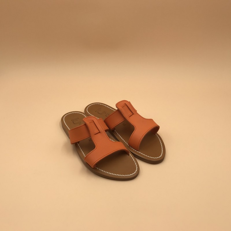 Sandales plates K.JACQUES, modèle RHEA en cuir Pul Mandarine, pointure 37.