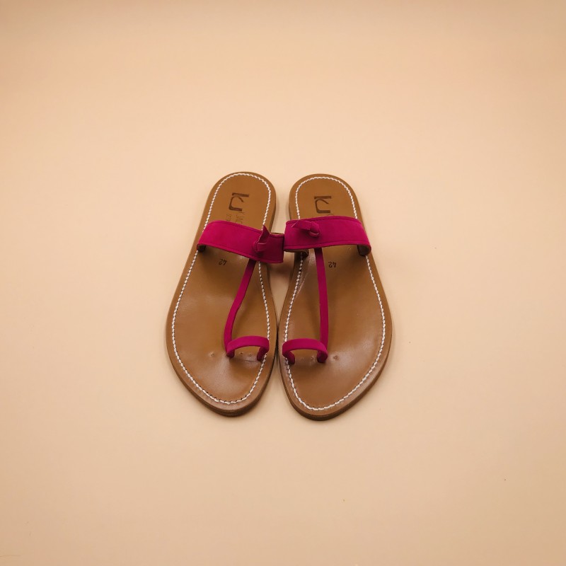 Sandales plates K.JACQUES, modèle GANGES en cuir Velours Framboise pointure 42.