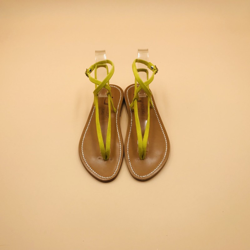 Sandales plates K.JACQUES, modèle DELTA en cuir Velours Sulfur, pointure 37.
