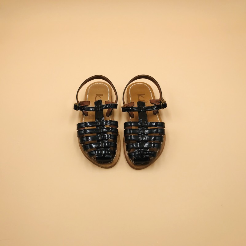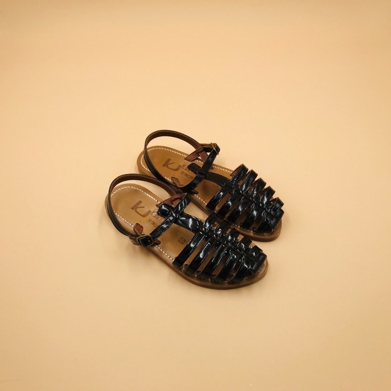 Sandales plates K.JACQUES, modèle ADRIEN en cuir Vernis Noir, pointure 35.