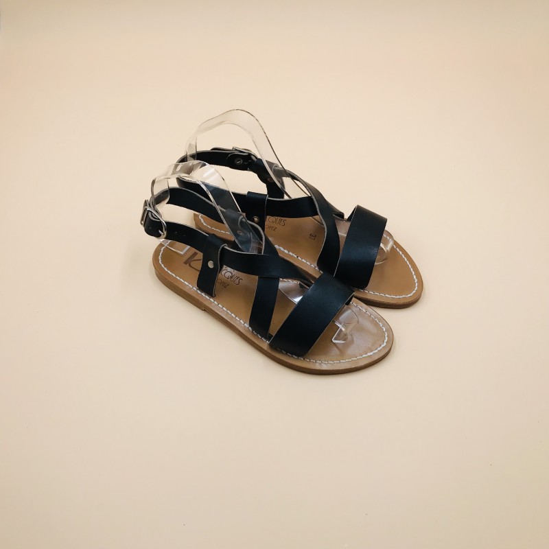 Sandales plates K.JACQUES, modèle CORENTIN en cuir Pul Noir, pointure 37.