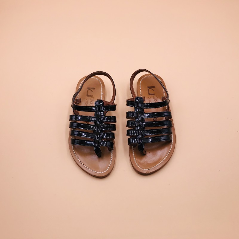 Sandales plates K.JACQUES, modèle HOMERE en cuir Vernis Noir, pointure 36.
