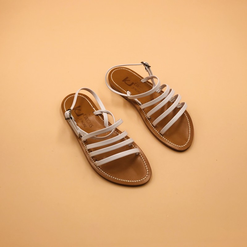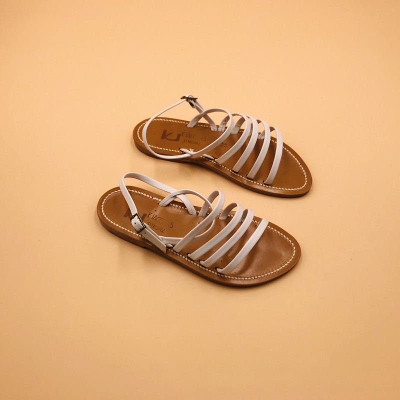 Sandales plates K.JACQUES, modèle KAZAN en cuir Odeon Blanc , pointure 37.