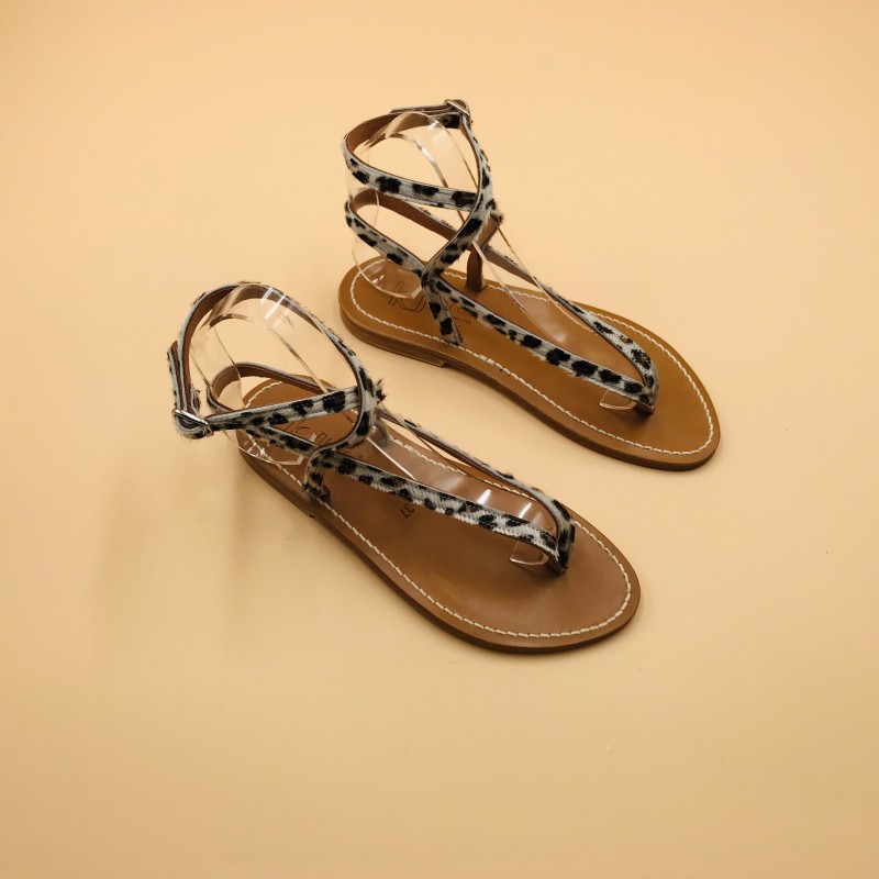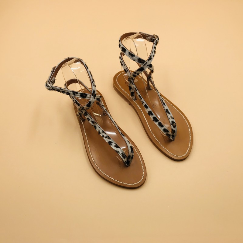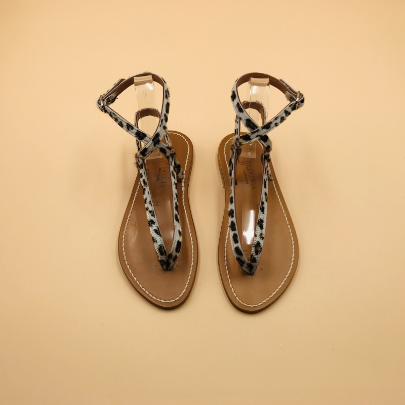 Sandales plates K.JACQUES, modèle DELTA en cuir Imprimé Leo-Neiges, pointure 37.