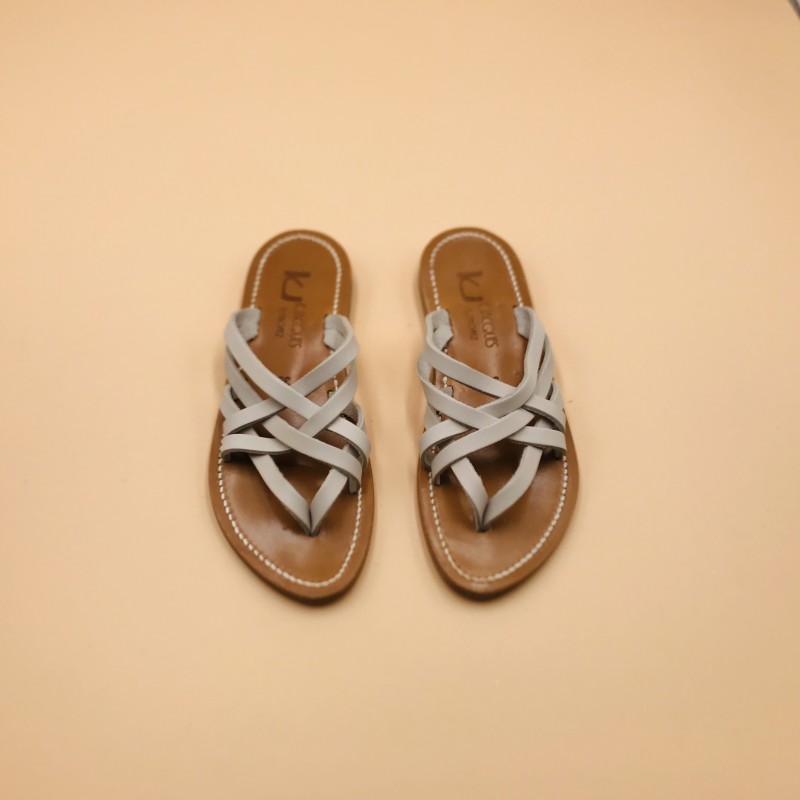 Les sandales K.Jacques sont fabriquées à la main par nos artisans à Saint-Tropez en France. Nos tropéziennes sont composées d'une semelle en cuir et d'un talon en caoutchouc hévéa naturel.