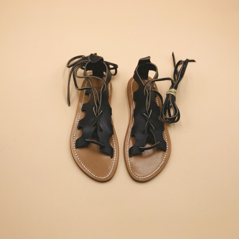 Sandales plates K.JACQUES, modèle JANUS en cuir Pul Noir pointure 36