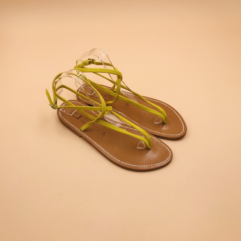 Sandales plates K.JACQUES, modèle DELTA en cuir Velours Amarillo, pointure 40.