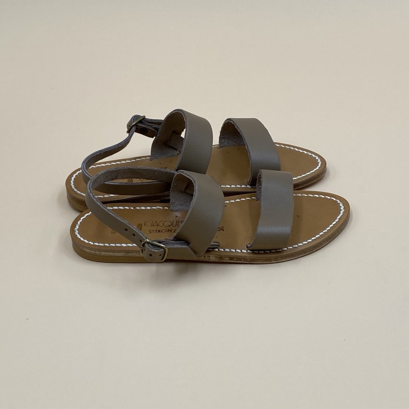 Sandales plates K.JACQUES, modèle BARIGOULE en cuir Pul Taupe, pointure 35.