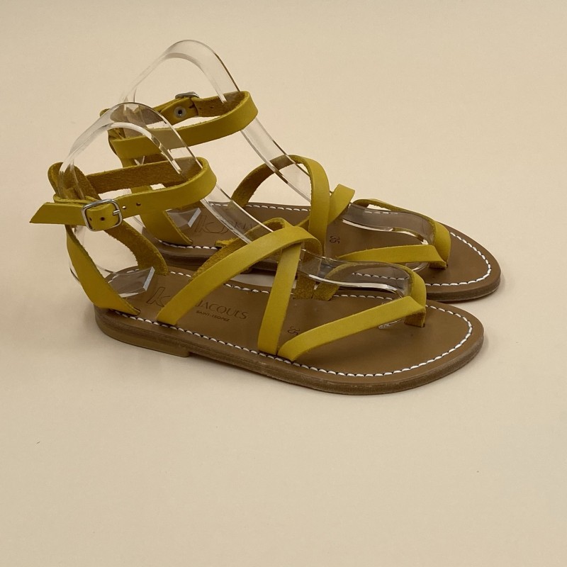 Sandales plates K.JACQUES, modèle EPICURE en cuir pul Maïs , pointure 35.