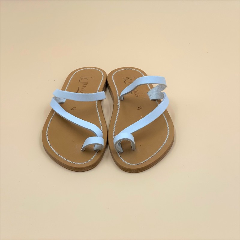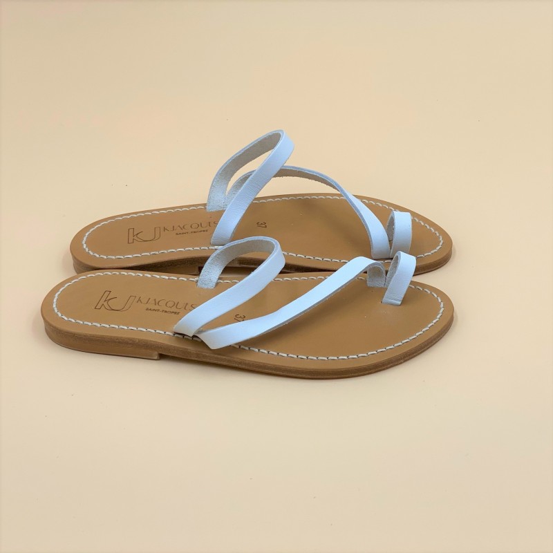 Sandales plates K.JACQUES, modèle Actium en cuir Pul Blanc, pointure 37.