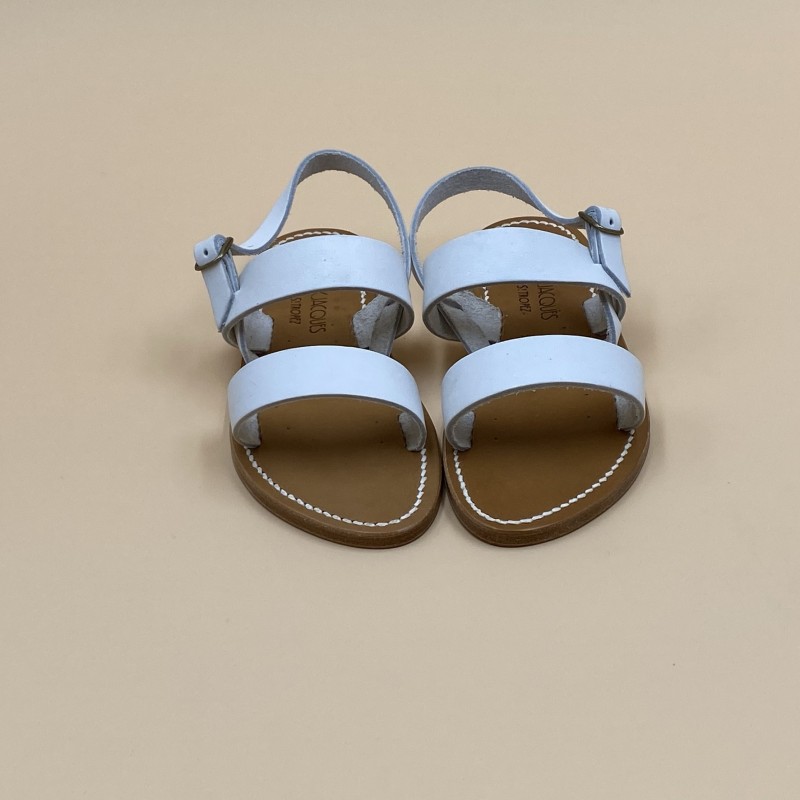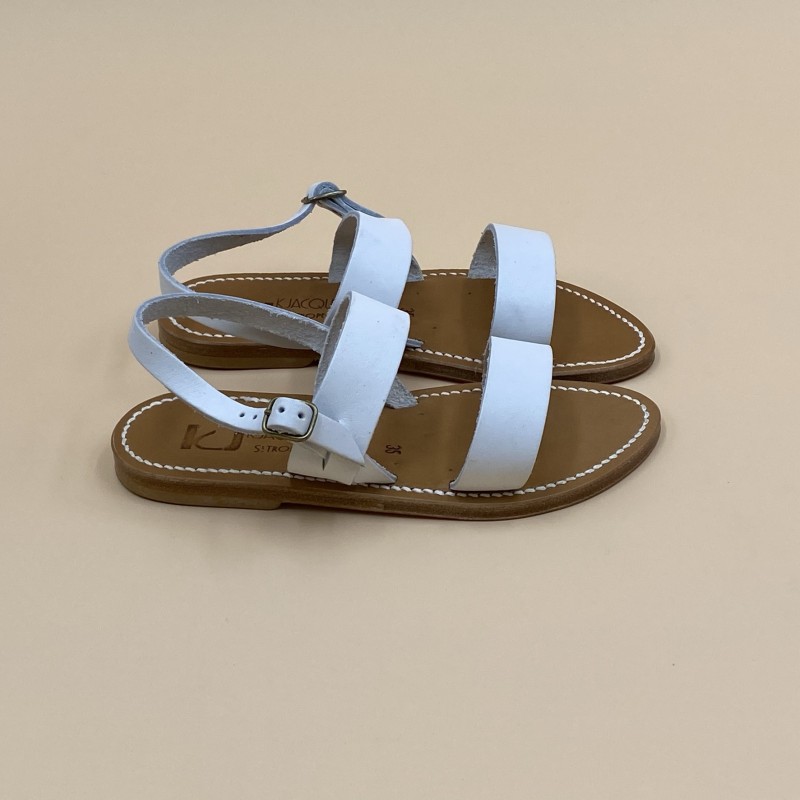 Sandales plates K.JACQUES, modèle BARIGOULE en cuir Pul Blanc, pointure 35.