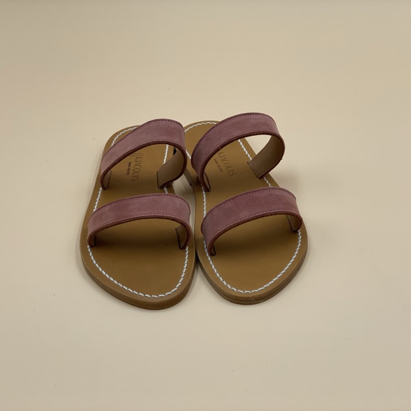 Sandales plates K.JACQUES, modèle BAGATEL en cuir Velours Rose Down, pointure 37.