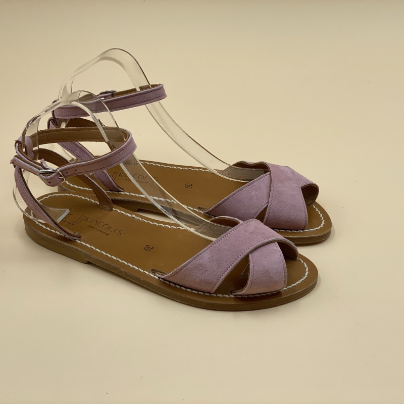 Sandales plates K.JACQUES, modèle MARILOU en cuir Velours Petalo , pointure 39.