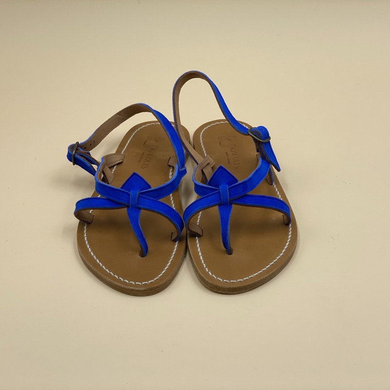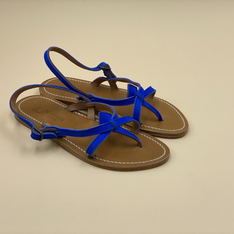 Sandales plates K.JACQUES, modèle ORION en cuir Velours Azulo, pointure 40.