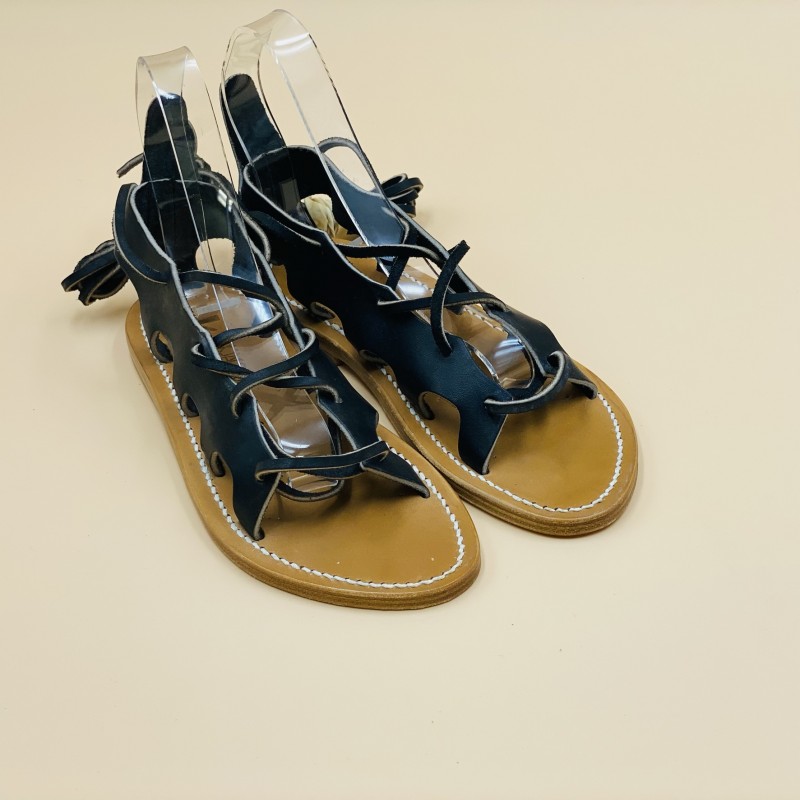 Sandales plates K.JACQUES, modèle JANUS en cuir Pul Noir pointure 37.