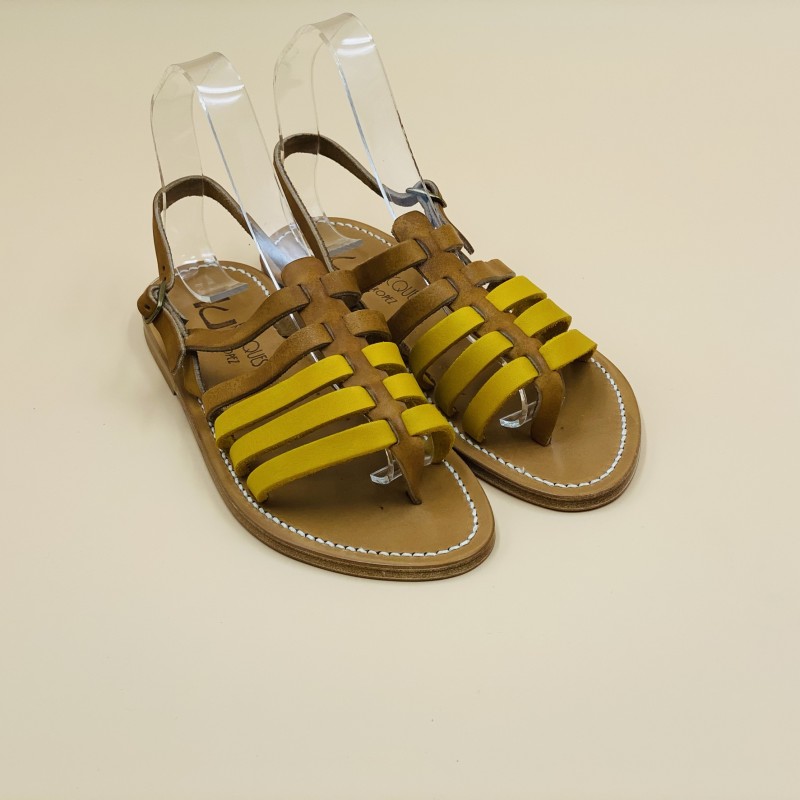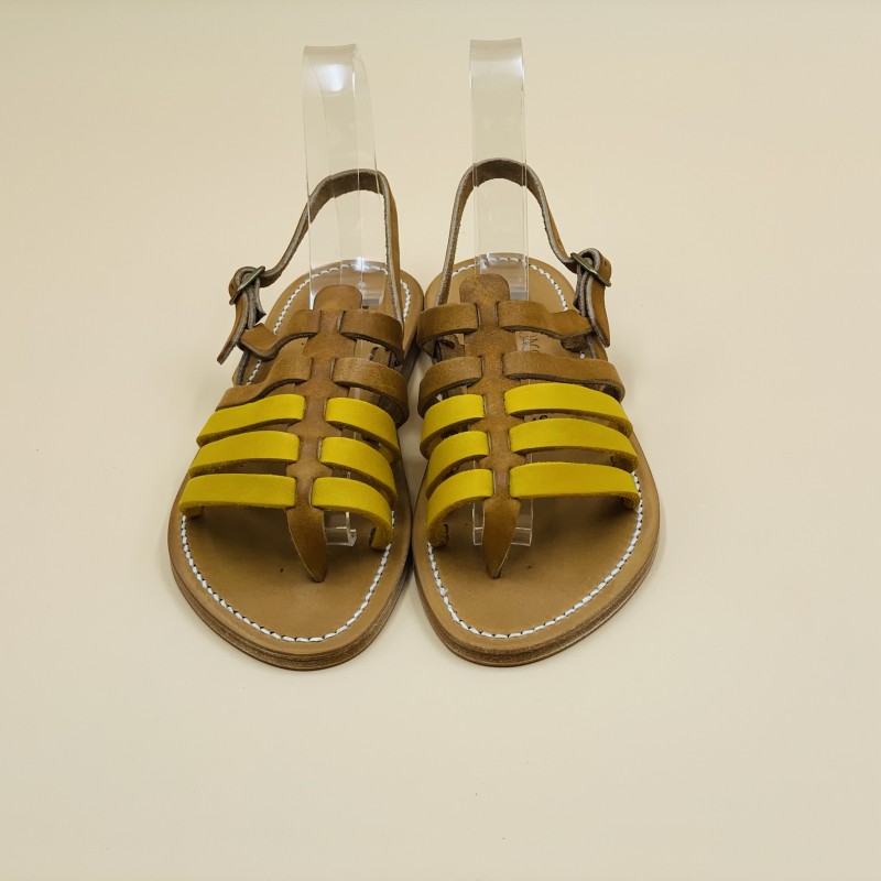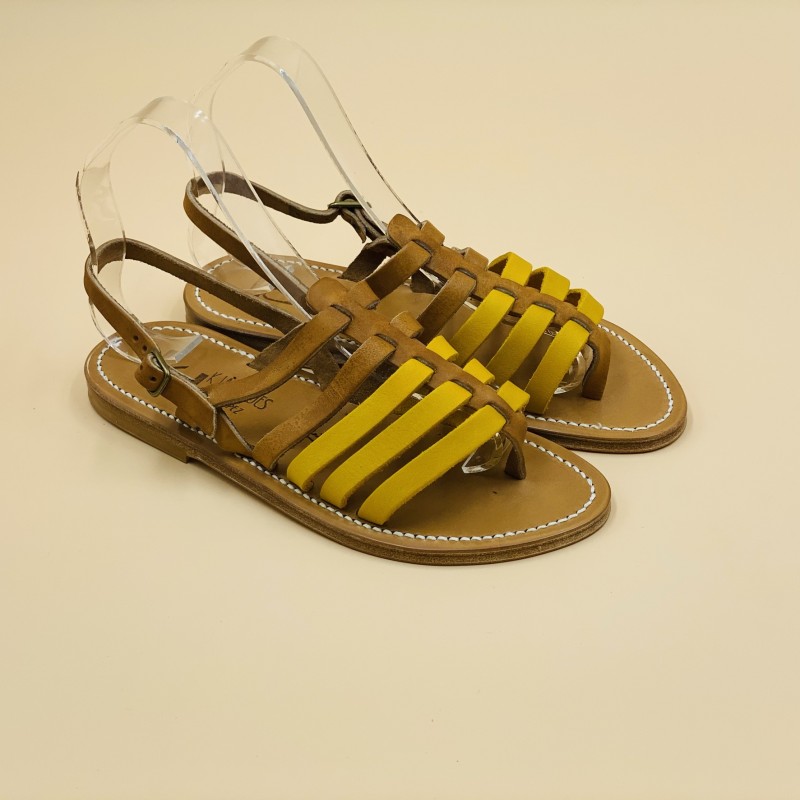 Sandales plates K.JACQUES, modèle HOMERE en cuirs Pul Naturel et Pul Maïs pointure 37.
