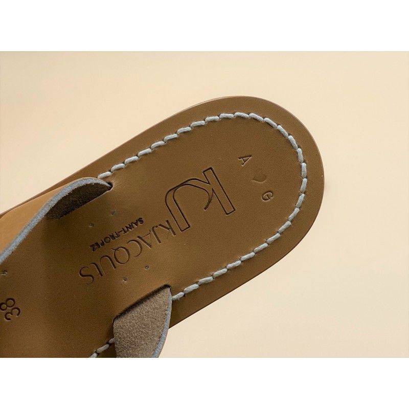 Les sandales K.Jacques sont fabriquées à la main par nos artisans à Saint-Tropez en France. Nos tropéziennes sont composées d'une semelle en cuir et d'un talon en caoutchouc hévéa naturel.
