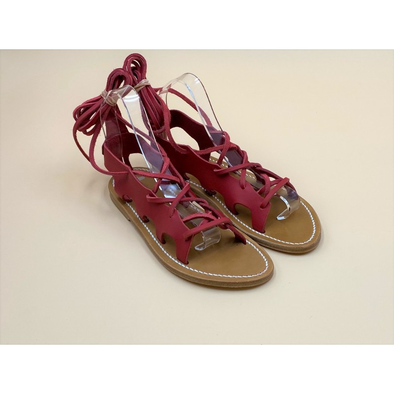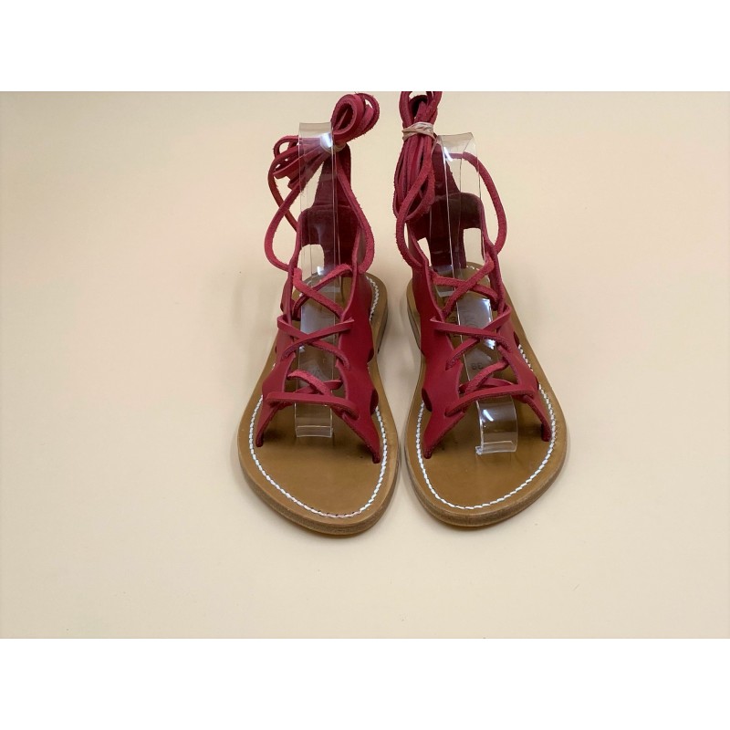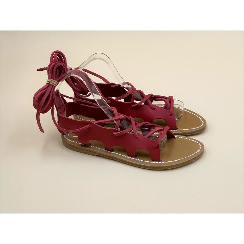Sandales plates K.JACQUES, modèle JANUS en cuir Pul Garance pointure 38.
