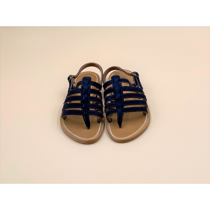 Sandales plates K.JACQUES, modèle HOMERE en cuir Pul Velours Marine pointure 38.