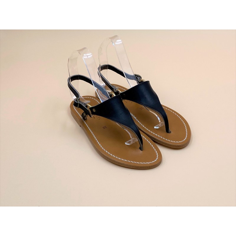 Sandales plates K.JACQUES, modèle TRITON en cuir Pul Noir, pointure 38
