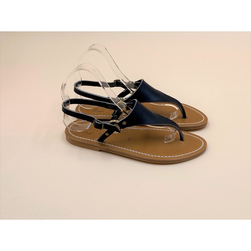Sandales plates K.JACQUES, modèle TRITON en cuir Pul Noir pointure 38.