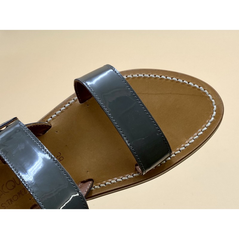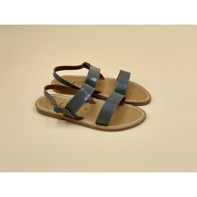 Sandales plates K.JACQUES, modèle BARIGOULE en cuir Vernis Gris, pointure 38.