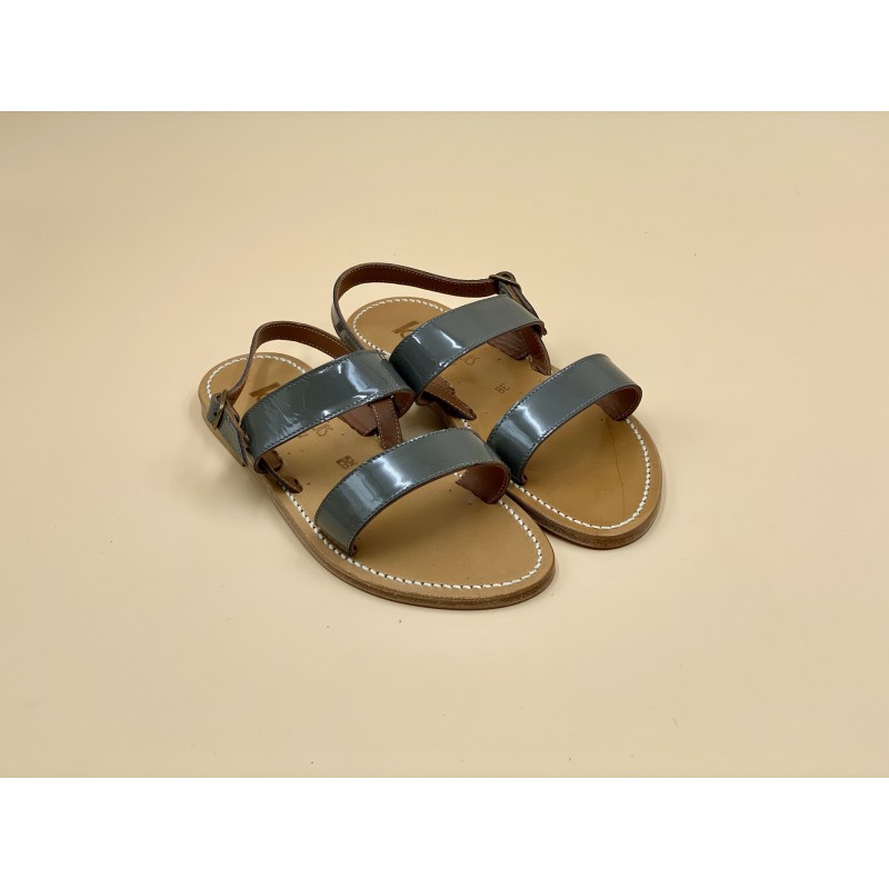 Sandales plates K.JACQUES, modèle BARIGOULE en cuir Vernis Gris , pointure 38.