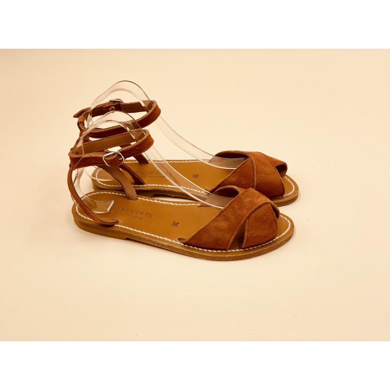 Sandales plates K.JACQUES, modèle MARILOU en cuir Velours Mud pointure 38.