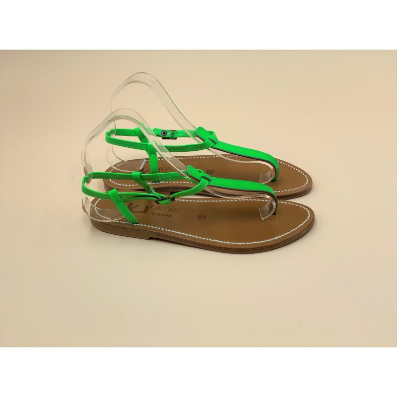 Sandales plates K.JACQUES, modèle PICON en cuir Fluo Vert , pointure 38. Les semelles sont assez marquées.