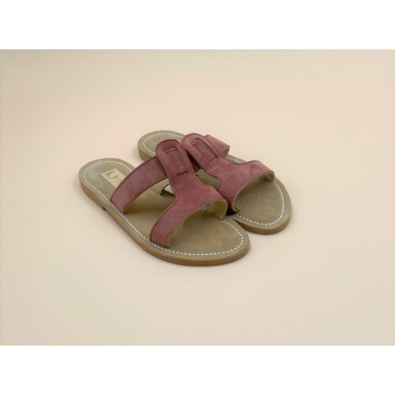 Sandales plates K.JACQUES, modèle TILOS en cuir Velours Rose Dawn, pointure 38.