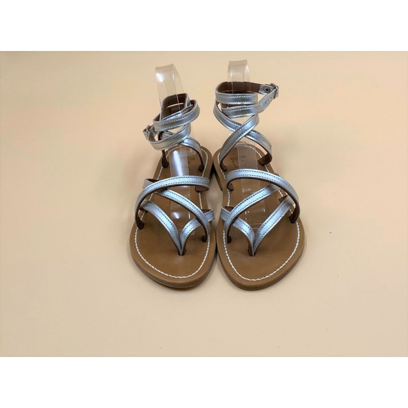 Sandales plates K.JACQUES, modèle ZENOBIE en cuir Metal Argent pointure 38.