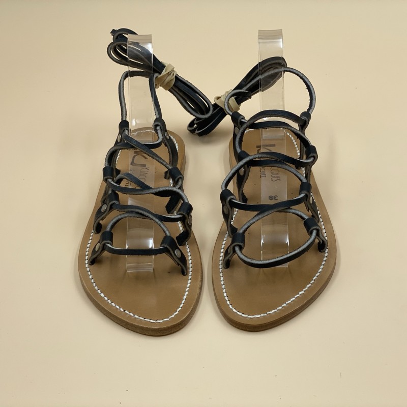 Sandales plates K.JACQUES, modèle CHAUVET en cuir Pul Noir pointure 39.