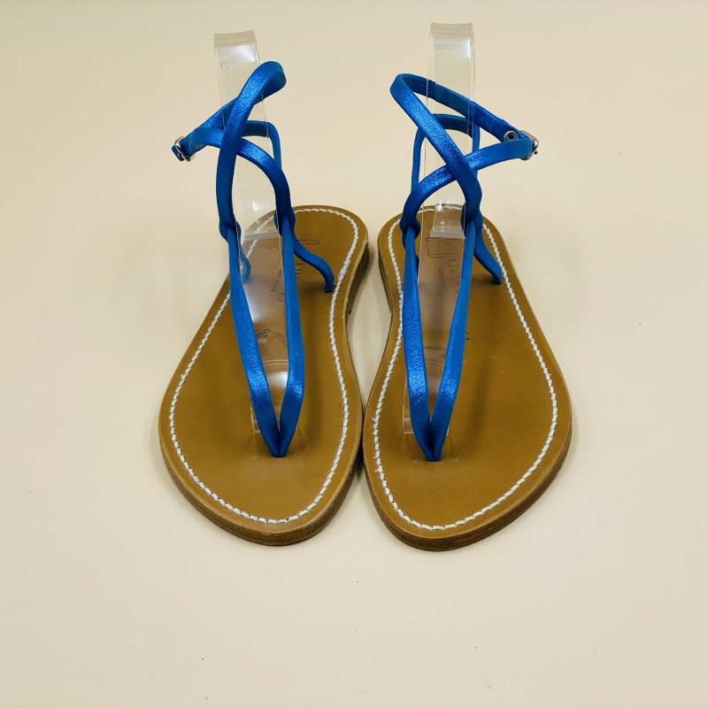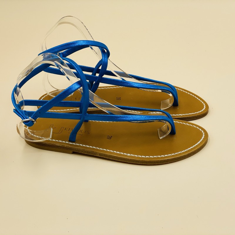 Sandales plates K.JACQUES, modèle DELTA en cuir Velours Métal Lagon, pointure 39.