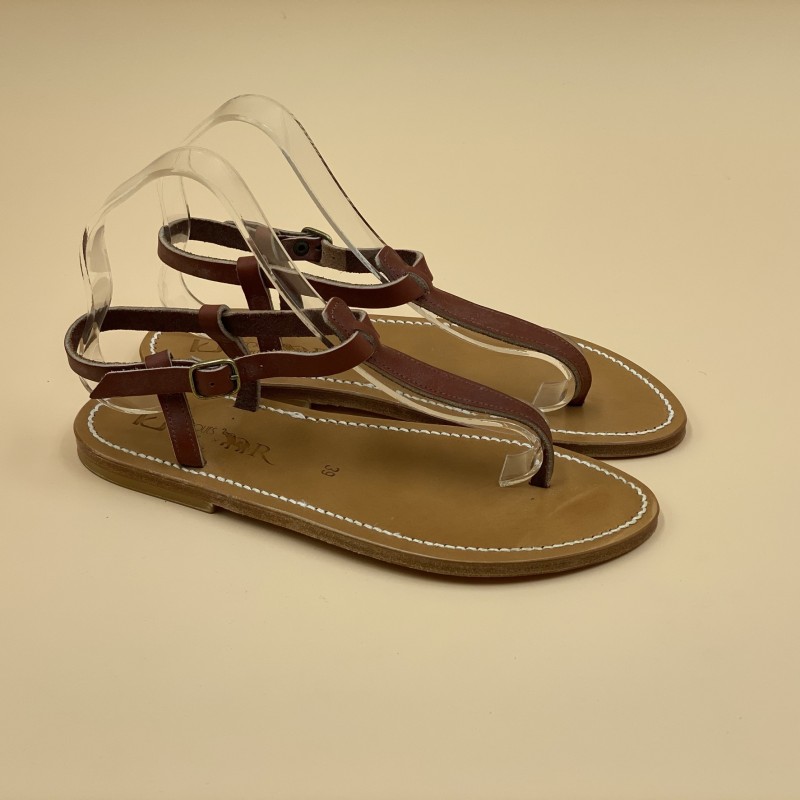 Sandales plates K.JACQUES, modèle PICON en cuir Pul Bordo, pointure 39.