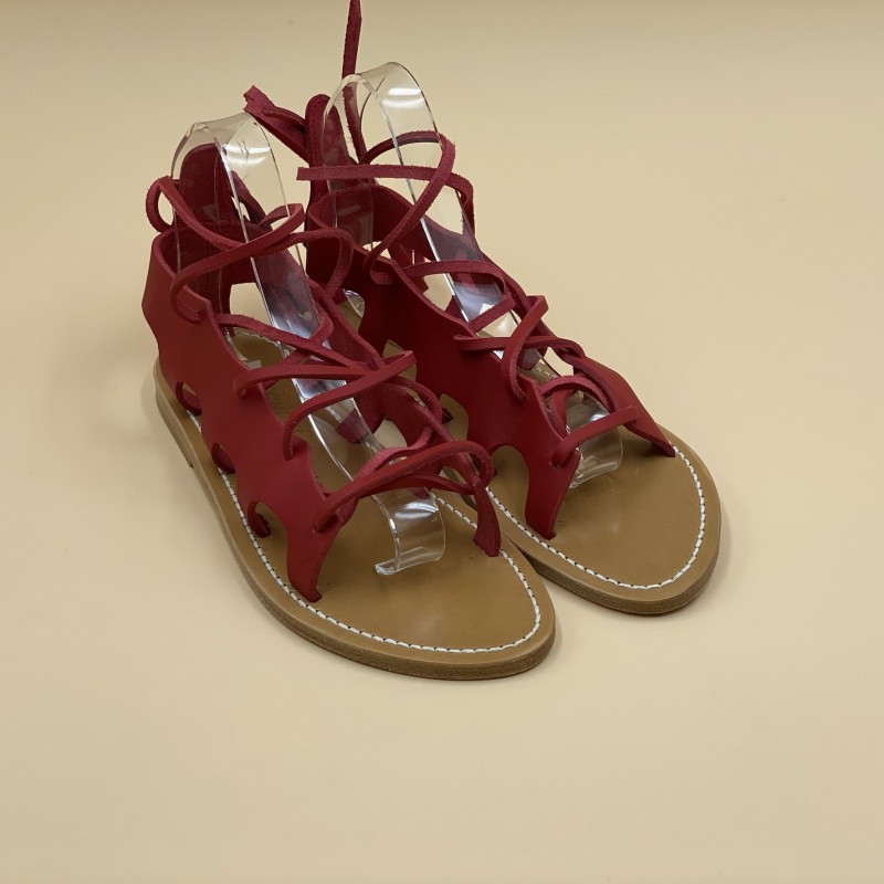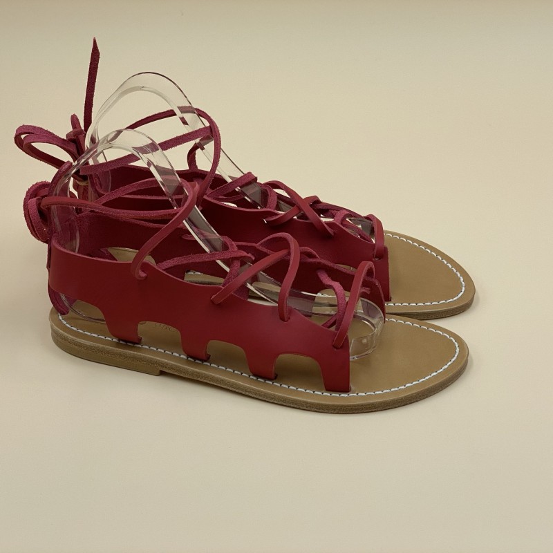 Sandales plates K.JACQUES, modèle JANUS en cuir Pul Garance pointure 39.