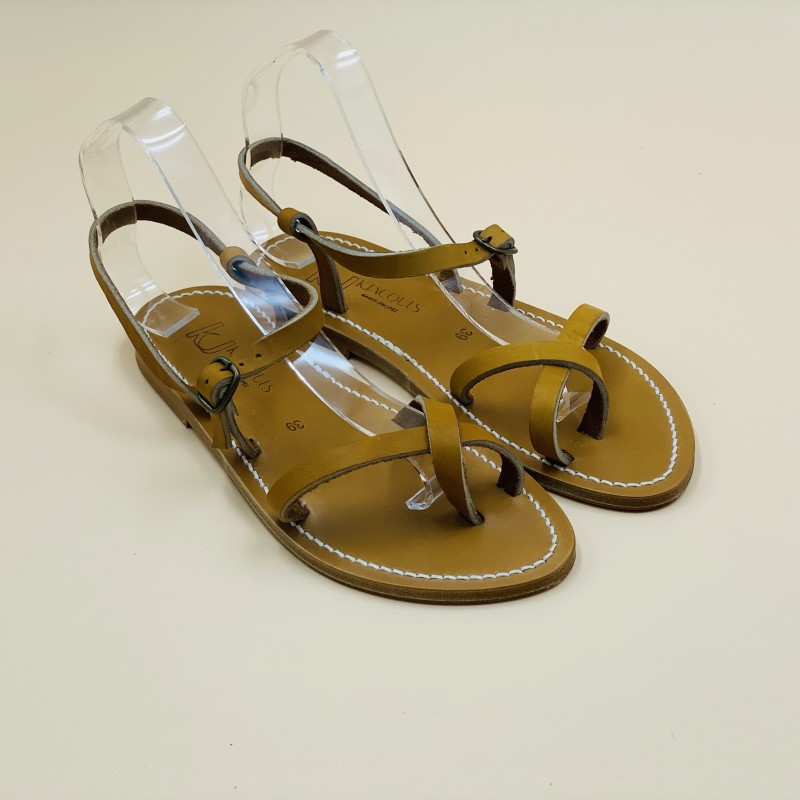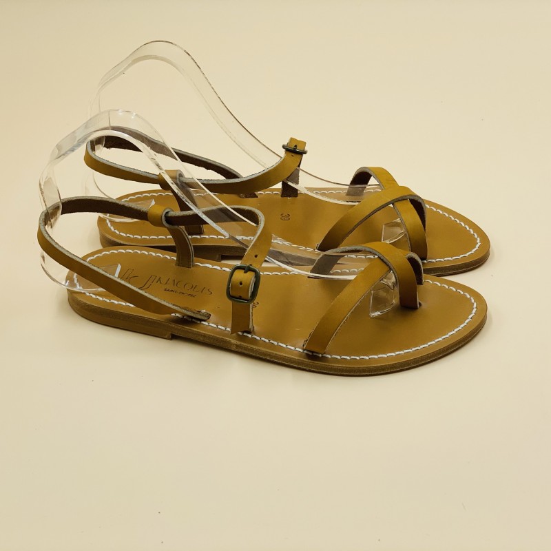 Sandales plates K.JACQUES, modèle CALCUTTA en cuir Pul Naturel, pointure 39.