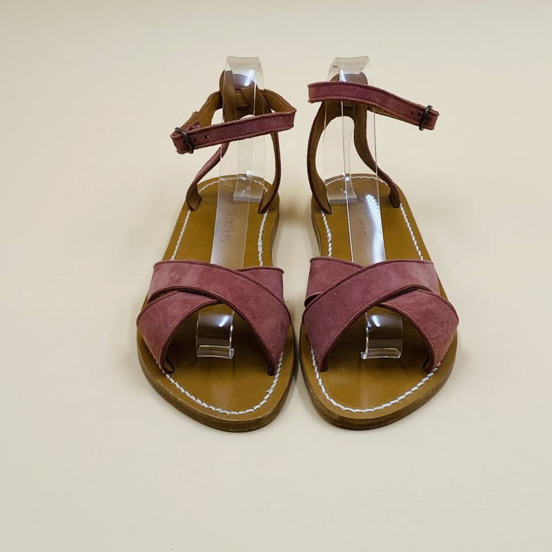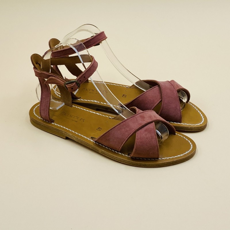 Sandales plates K.JACQUES, modèle DOTTIE en cuir Velours Rose Dawn, pointure 40.