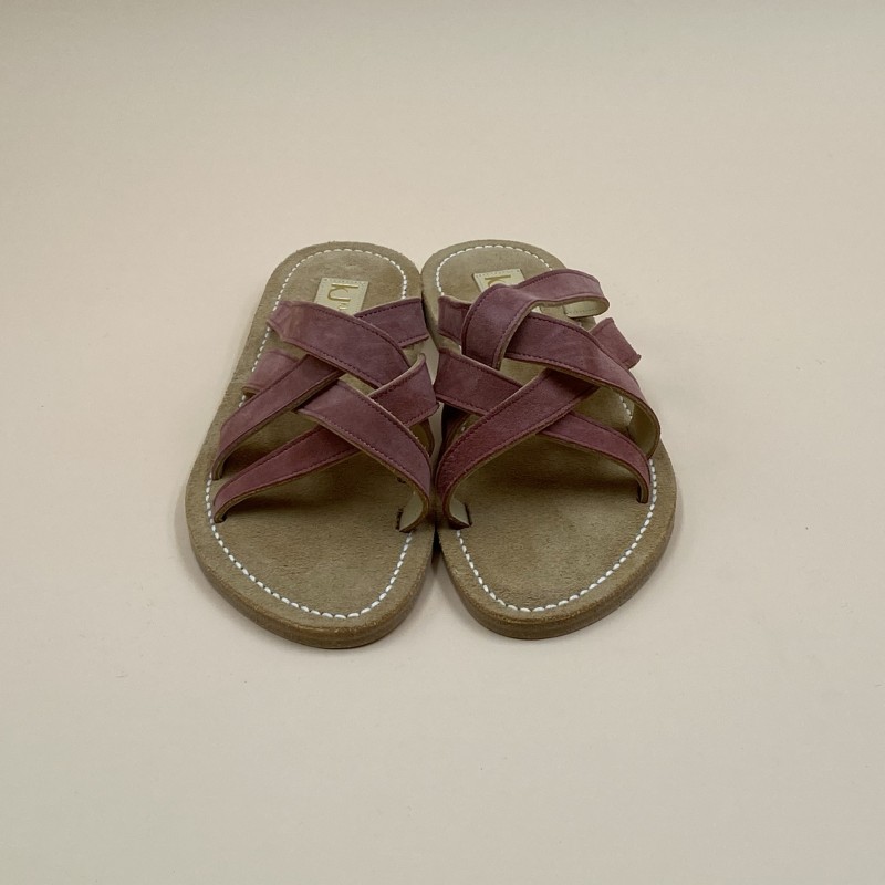 Sandales plates K.JACQUES, modèle TANZANIE en cuir Velours Rose Down , pointure 40.