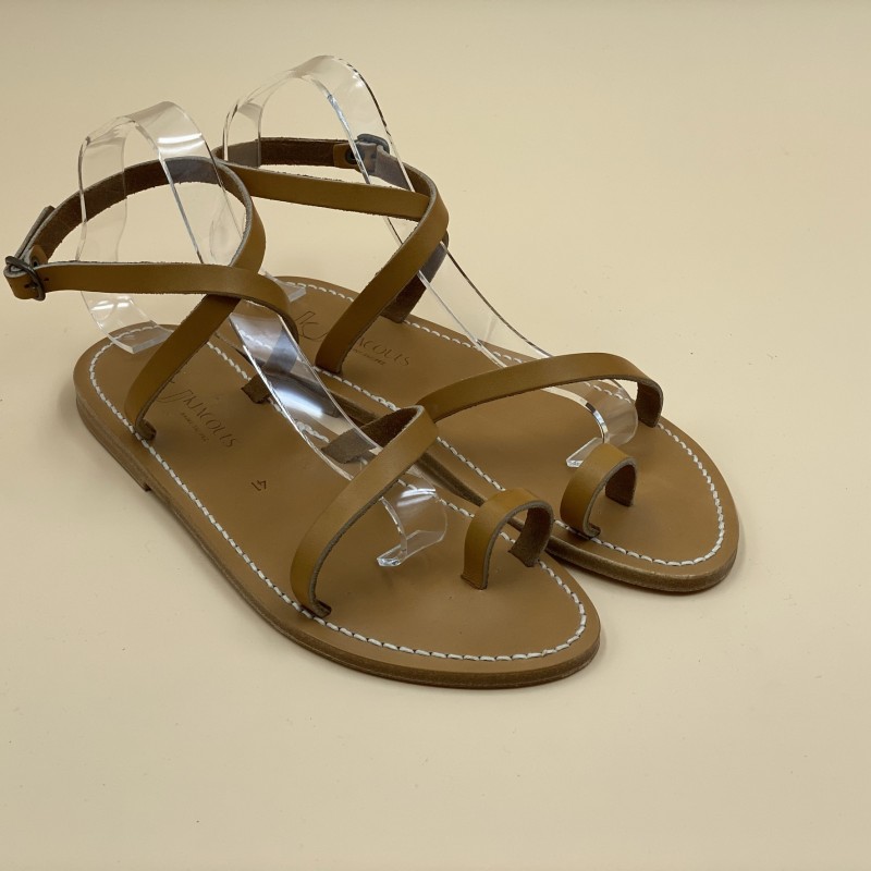 Sandales plates K.JACQUES, modèle LOKI en cuir Pul Naturel, pointure 41.