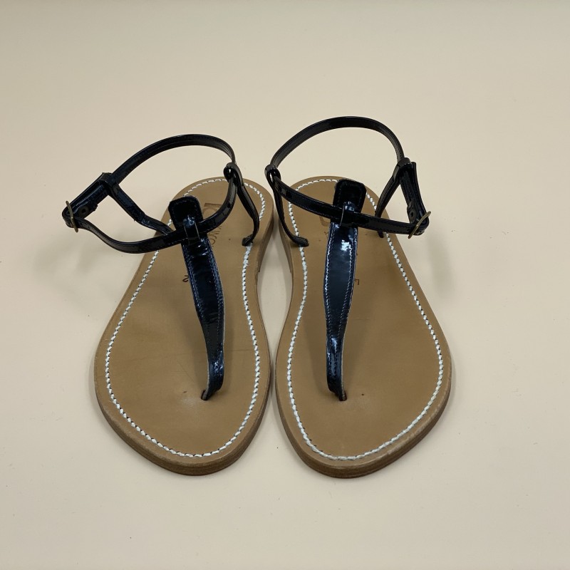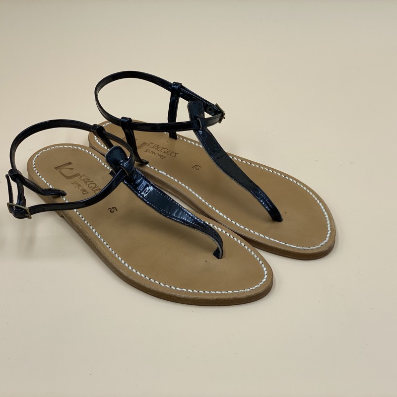 Sandales plates K.JACQUES, modèle PICON en cuir Vernis Noir pointure 42.